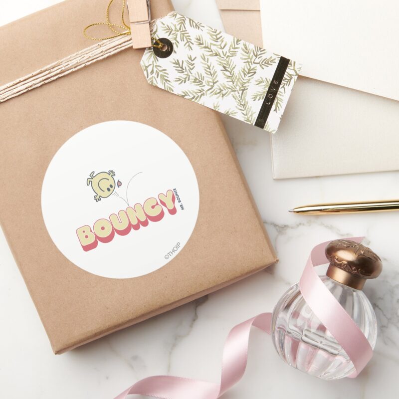 Mr. Bounce Bouncing On His Head Classic Round Sticker vinyl sticker, waterproof durable collectible sticker for laptop, phone, bottle, bike, notebook, helmet, and accessories.