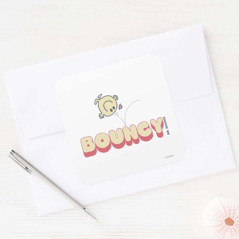 Mr. Bounce Bouncing On His Head Square Sticker vinyl sticker, waterproof durable collectible sticker for laptop, phone, bottle, bike, notebook, helmet, and accessories.