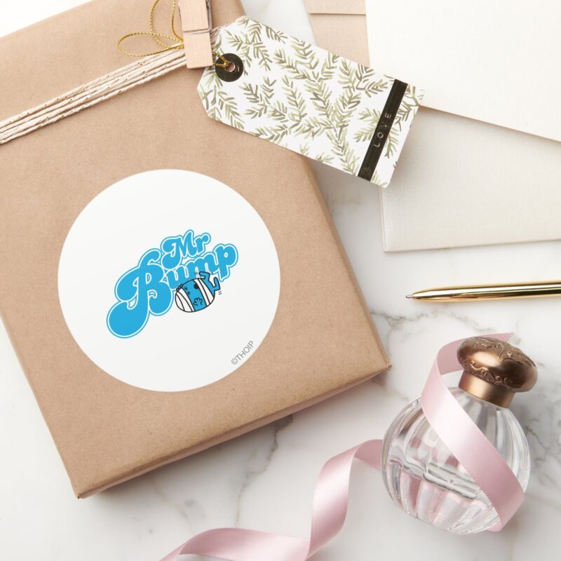 Mr Bump Logo 1 Classic Round Sticker vinyl sticker, waterproof durable collectible sticker for laptop, phone, bottle, bike, notebook, helmet, and accessories.