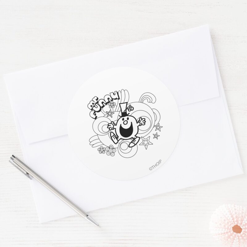 Mr. Funny Black White Swirls Stars Classic Round Sticker
