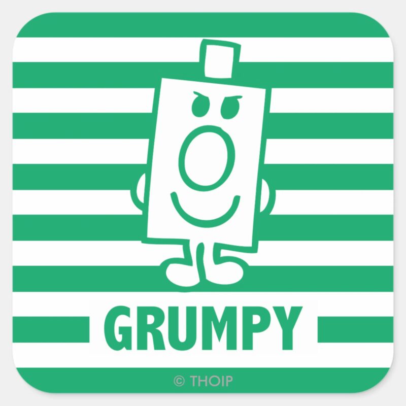 Mr Grumpy Mischievous Grin And Green Stripes Square Sticker
