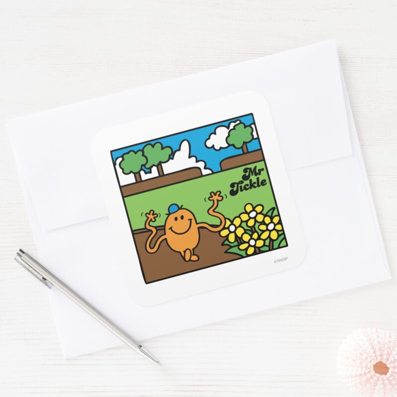 Mr. Tickle Outdoor Fun Square Sticker vinyl sticker, waterproof durable collectible sticker for laptop, phone, bottle, bike, notebook, helmet, and accessories.