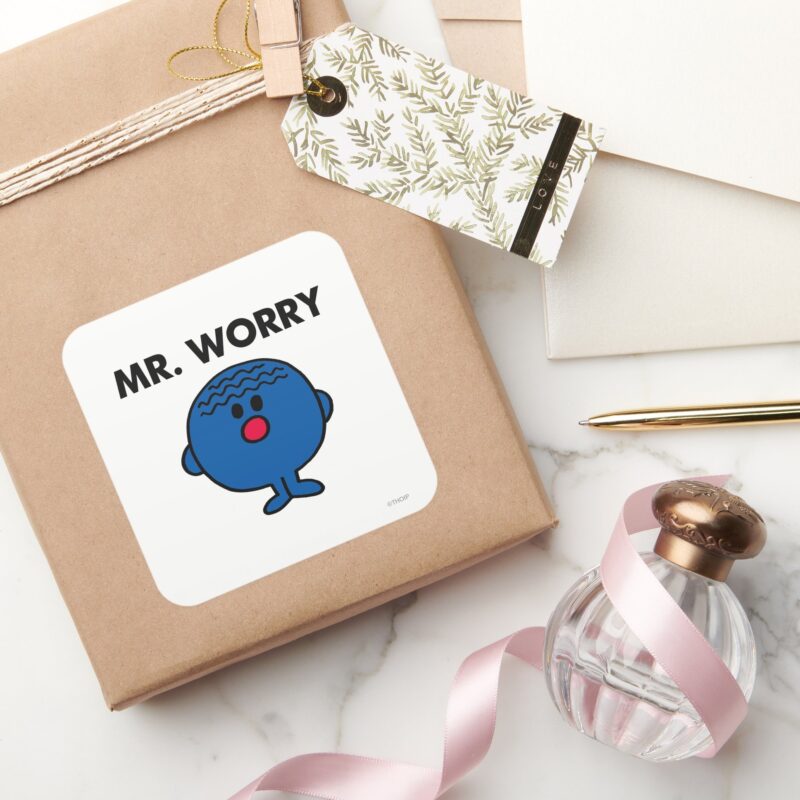 Mr Worry Classic Square Sticker vinyl sticker, waterproof durable collectible sticker for laptop, phone, bottle, bike, notebook, helmet, and accessories.