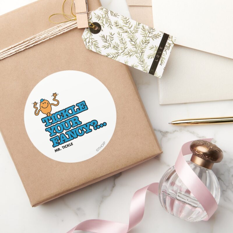Tickle Your Fancy Classic Round Sticker vinyl sticker, waterproof durable collectible sticker for laptop, phone, bottle, bike, notebook, helmet, and accessories.