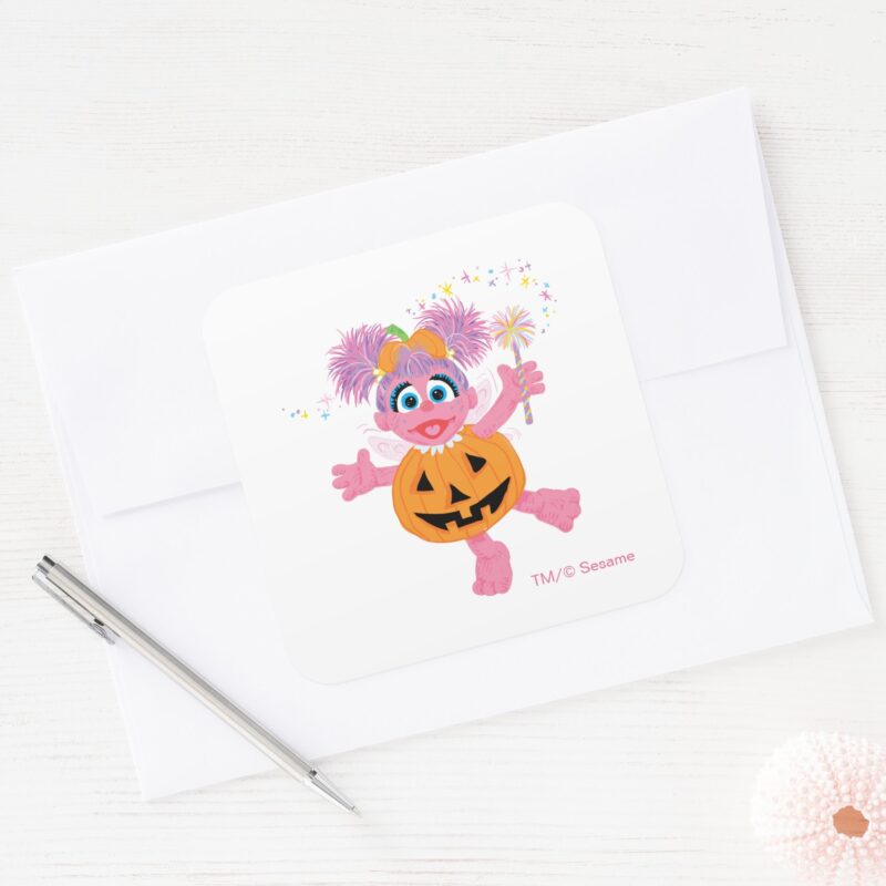 Abby Cadabby Cute As A Pumpkin Square Sticker vinyl sticker, waterproof durable collectible sticker for laptop, phone, bottle, bike, notebook, helmet, and accessories.