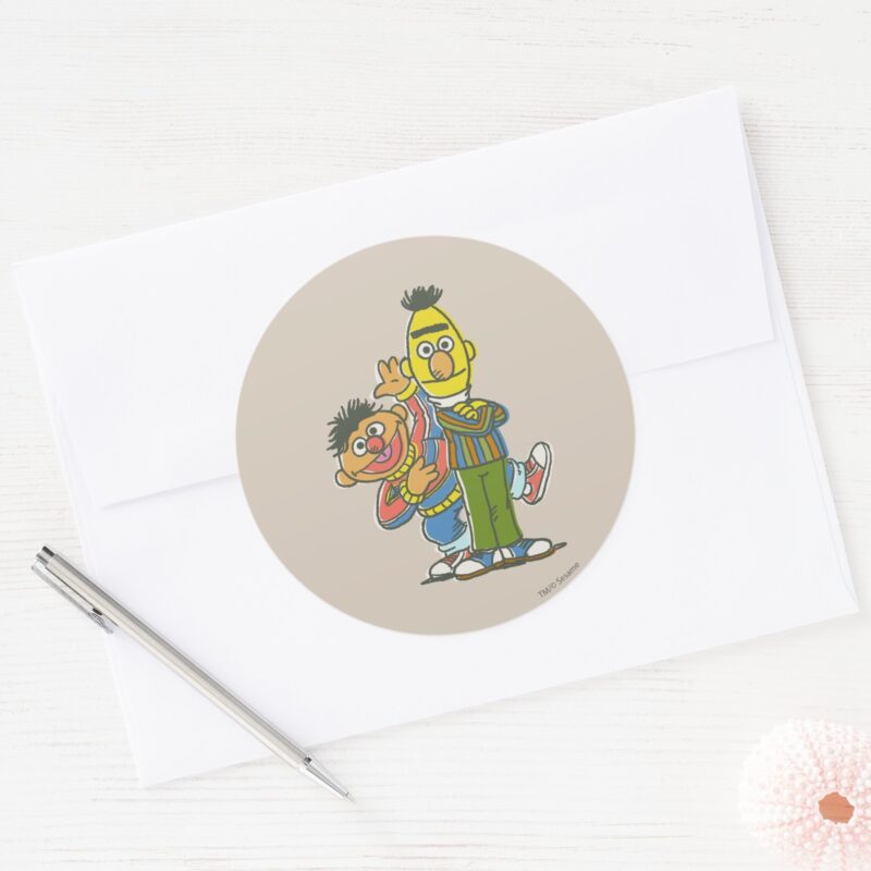Bert And Ernie Classic Style Classic Round Sticker vinyl sticker, waterproof durable collectible sticker for laptop, phone, bottle, bike, notebook, helmet, and accessories.