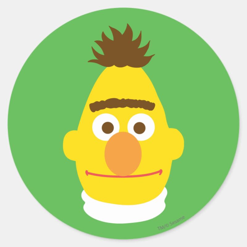 Bert Face Classic Round Sticker vinyl sticker, waterproof durable collectible sticker for laptop, phone, bottle, bike, notebook, helmet, and accessories.