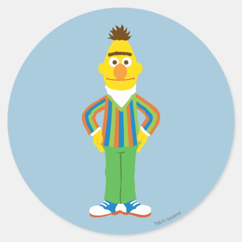 Bert Standing Classic Round Sticker vinyl sticker, waterproof durable collectible sticker for laptop, phone, bottle, bike, notebook, helmet, and accessories.