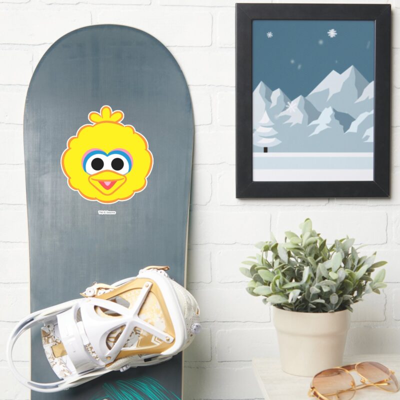 Big Bird Smiling Face 2 Sticker vinyl sticker, waterproof durable collectible sticker for laptop, phone, bottle, bike, notebook, helmet, and accessories.