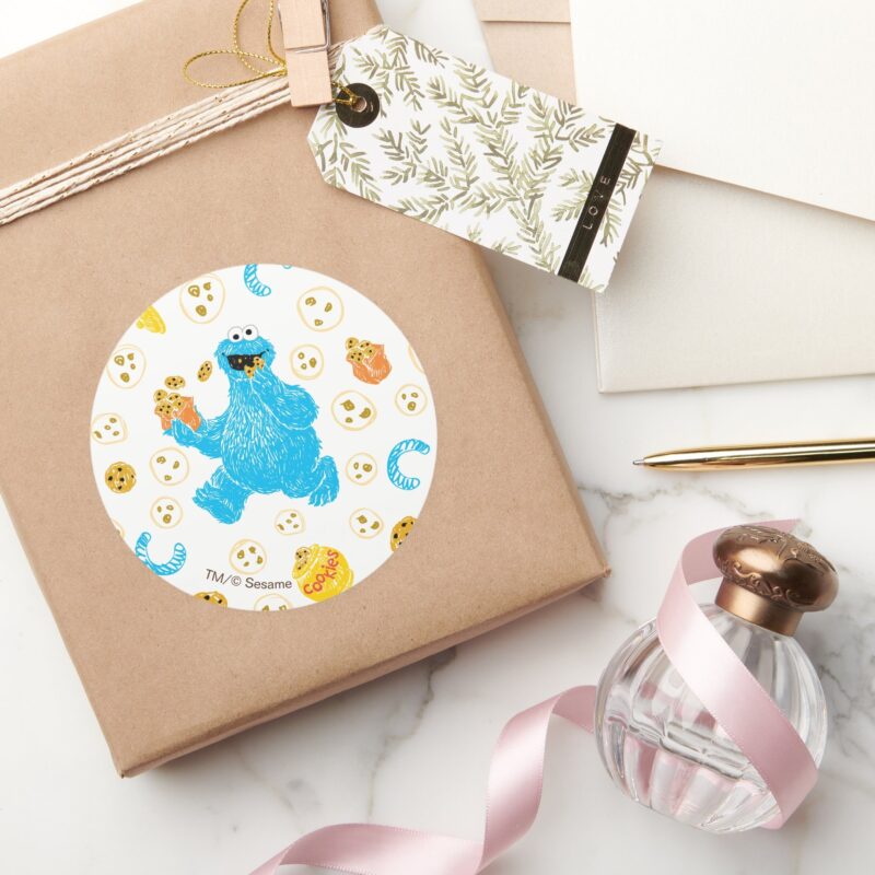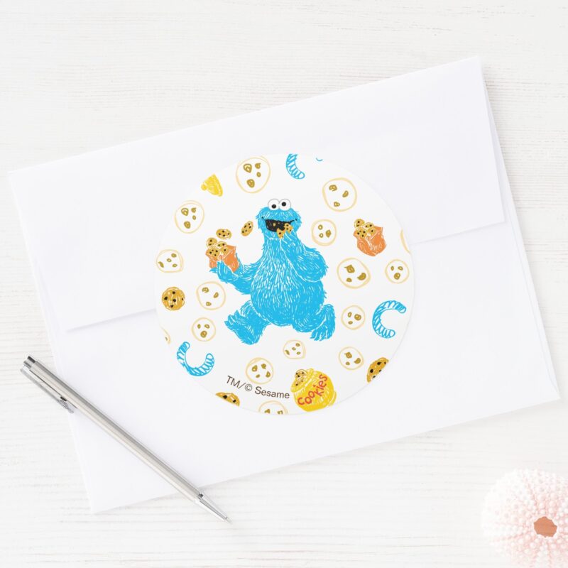 Crayon Cookie Monster Cookie Pattern Classic Round Sticker