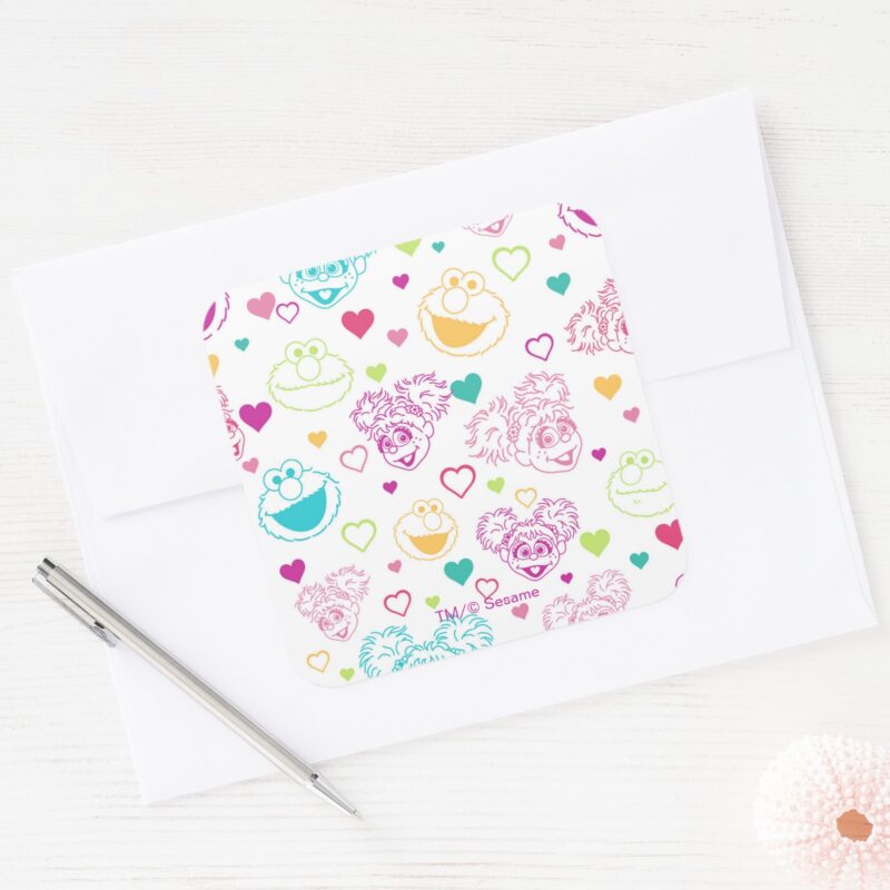 Elmo Abby Cadabby Valentine Hearts Pattern Square Sticker