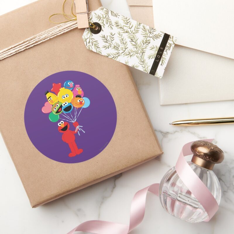 Elmo Balloons Classic Round Sticker vinyl sticker, waterproof durable collectible sticker for laptop, phone, bottle, bike, notebook, helmet, and accessories.