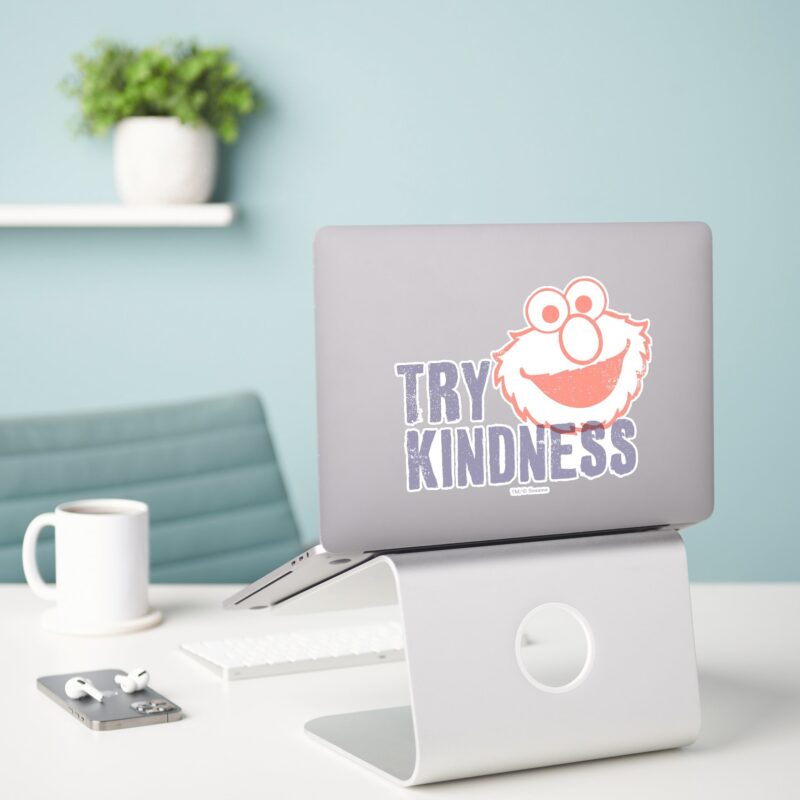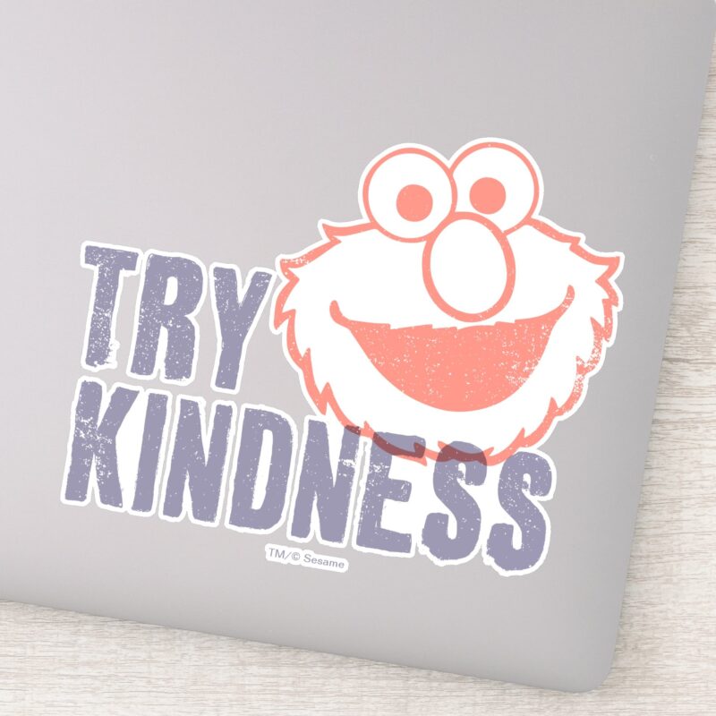 Elmo Try Kindness Sticker vinyl sticker, waterproof durable collectible sticker for laptop, phone, bottle, bike, notebook, helmet, and accessories.