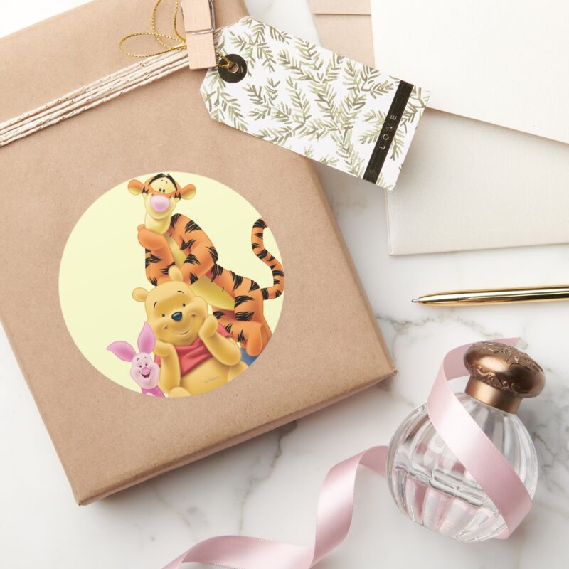 Pooh Friends 11 Classic Round Sticker vinyl sticker, waterproof durable collectible sticker for laptop, phone, bottle, bike, notebook, helmet, and accessories.