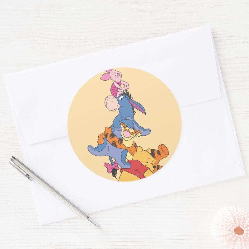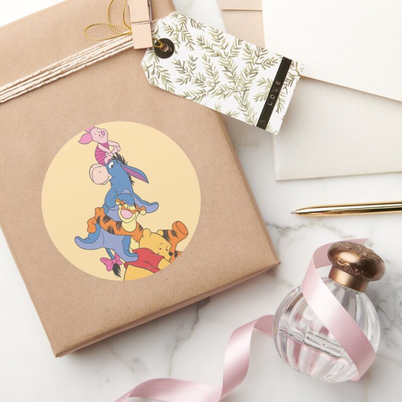 Pooh Friends 8 Classic Round Sticker vinyl sticker, waterproof durable collectible sticker for laptop, phone, bottle, bike, notebook, helmet, and accessories.