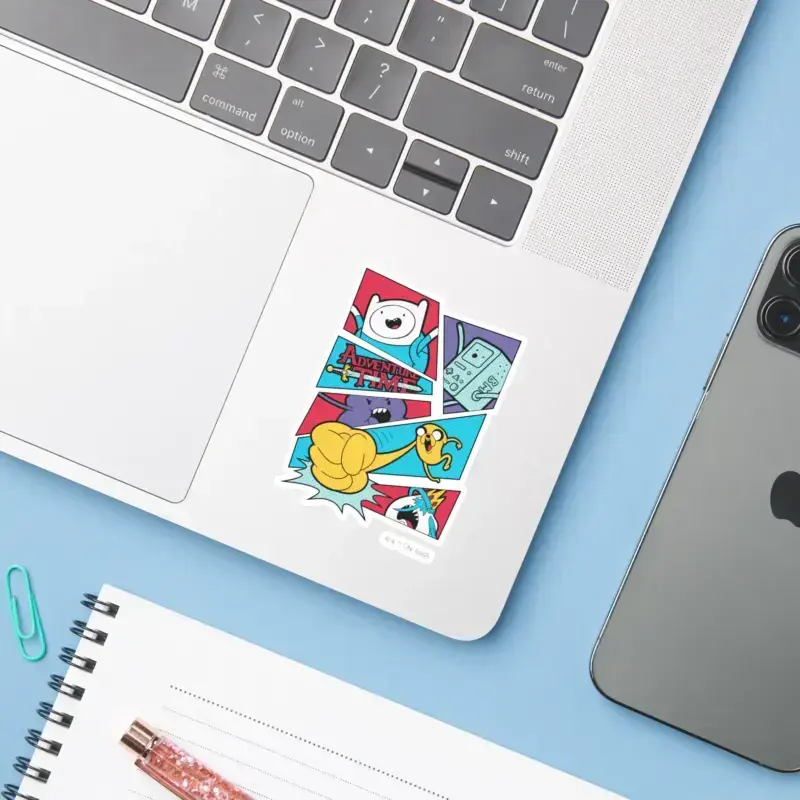 Adventure Time Action Panel Graphic Sticker vinyl sticker, waterproof durable collectible sticker for laptop, phone, bottle, bike, notebook, helmet, and accessories.