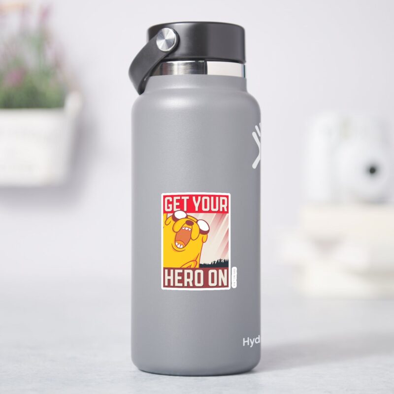 Adventure Time Jake Get Your Hero On Sticker vinyl sticker, waterproof durable collectible sticker for laptop, phone, bottle, bike, notebook, helmet, and accessories.