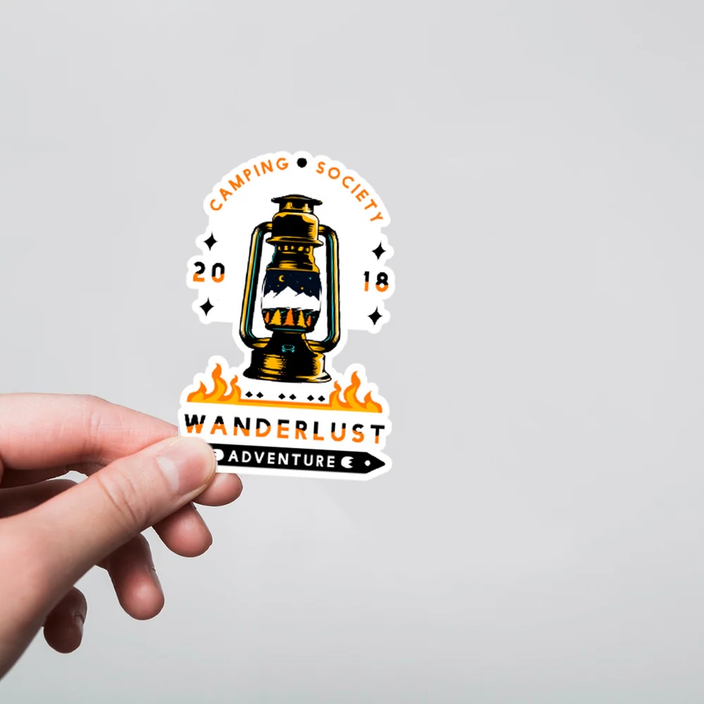 Wanderlust Travels Stickers vinyl sticker, waterproof durable collectible sticker for laptop, phone, bottle, bike, notebook, helmet, and accessories.